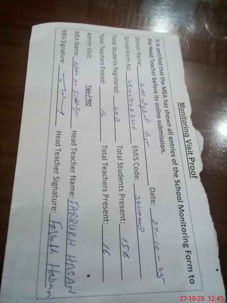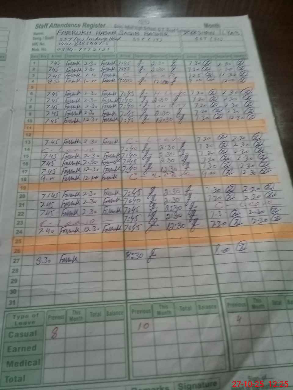 | Name: FA**** HA**** Designation: (School Headmaster's/Headmistress's) S S T Sci Phone/Cell Number: 03**** |