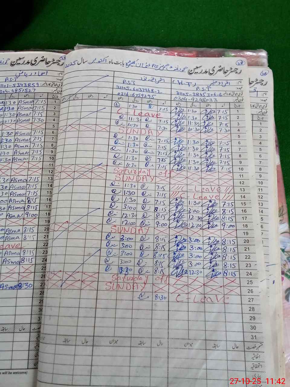 | Leave | Duty | Absent | Maternity | Medical | Ex- Pak |