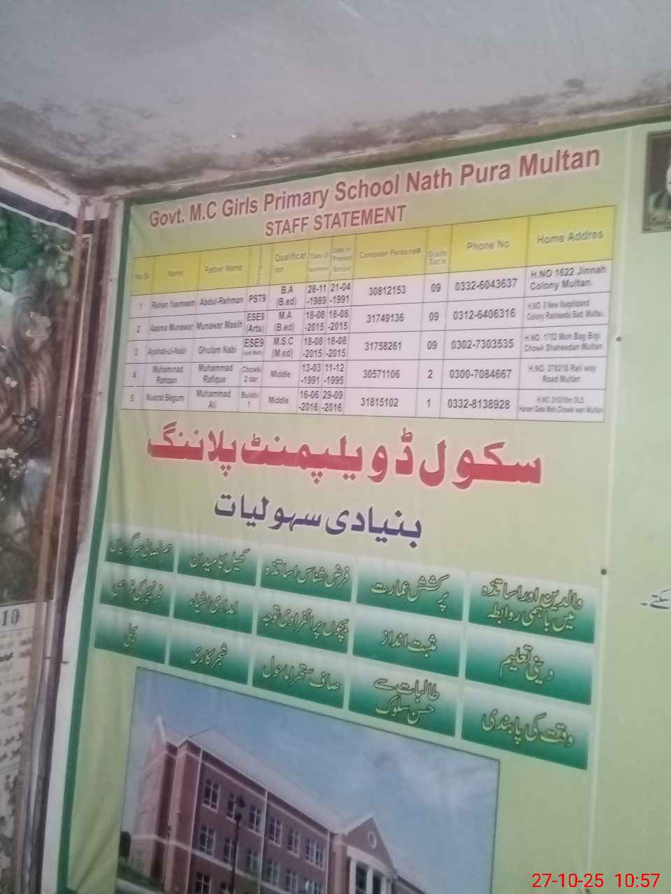 | EMIS Code: 36110339 | Name of School: GMPS MC NATH PURA MULTAN | |||
