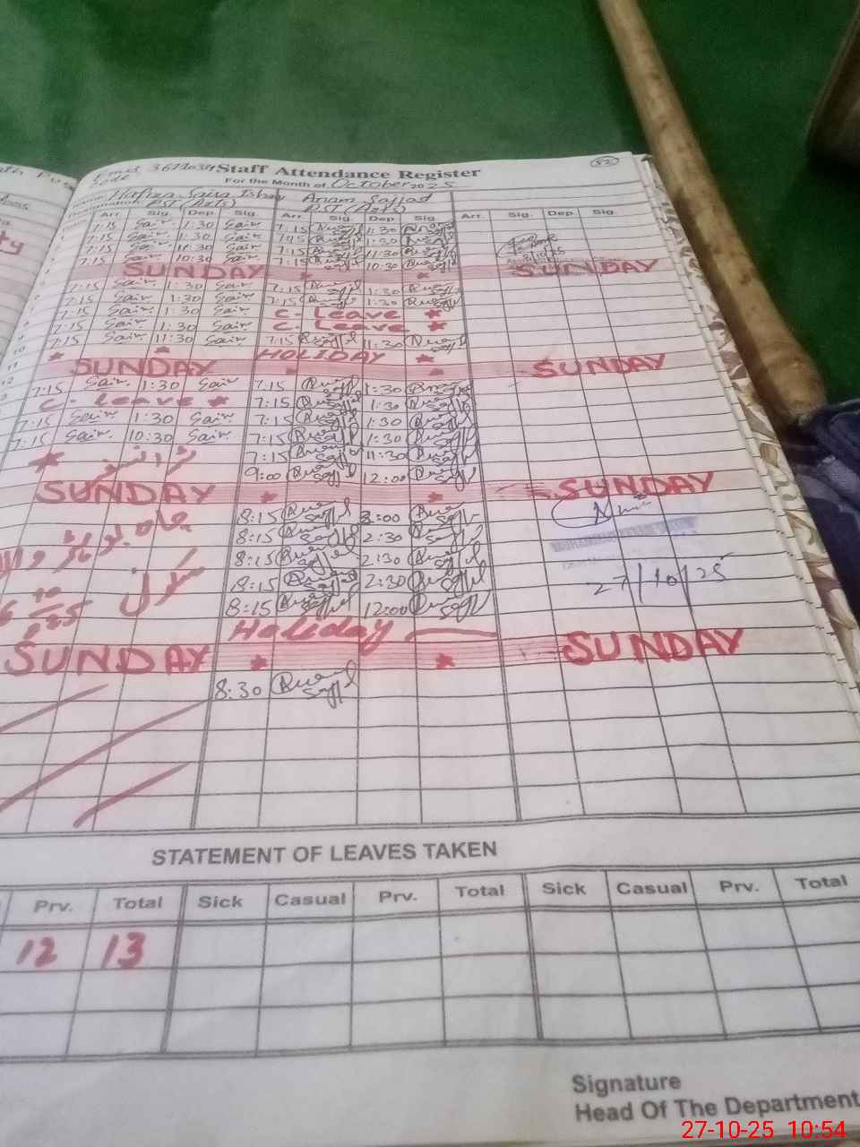 | Leave | Duty | Absent | Maternity | Medical | Ex- Pak |