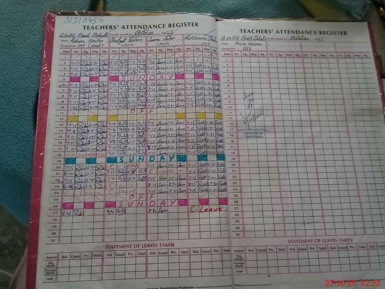 | Name: RE**** KO**** Designation: (School Headmaster's/Headmistress's) PST Phone/Cell Number: 03**** |