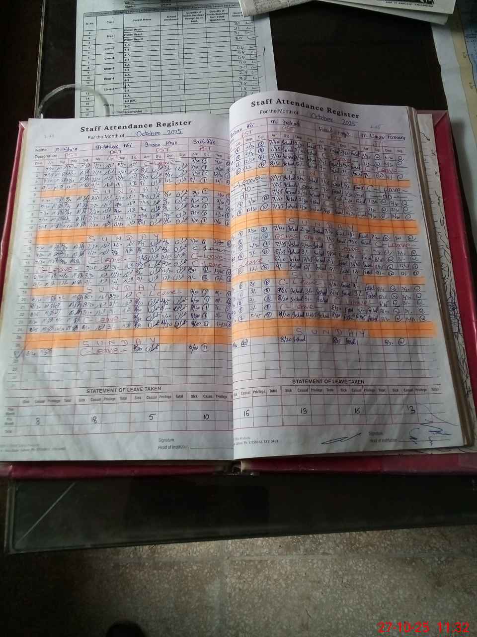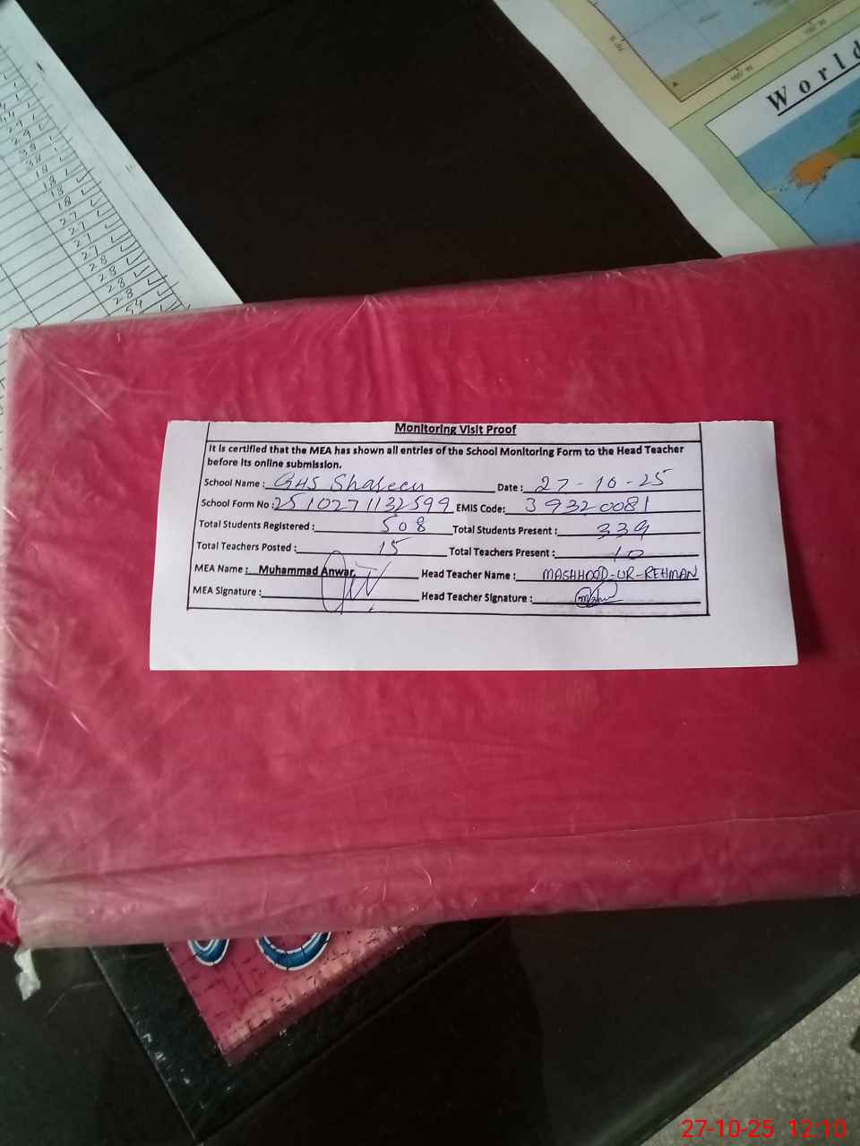 | Attendance Register | Head Teacher | MEA with School | Visit Proof |