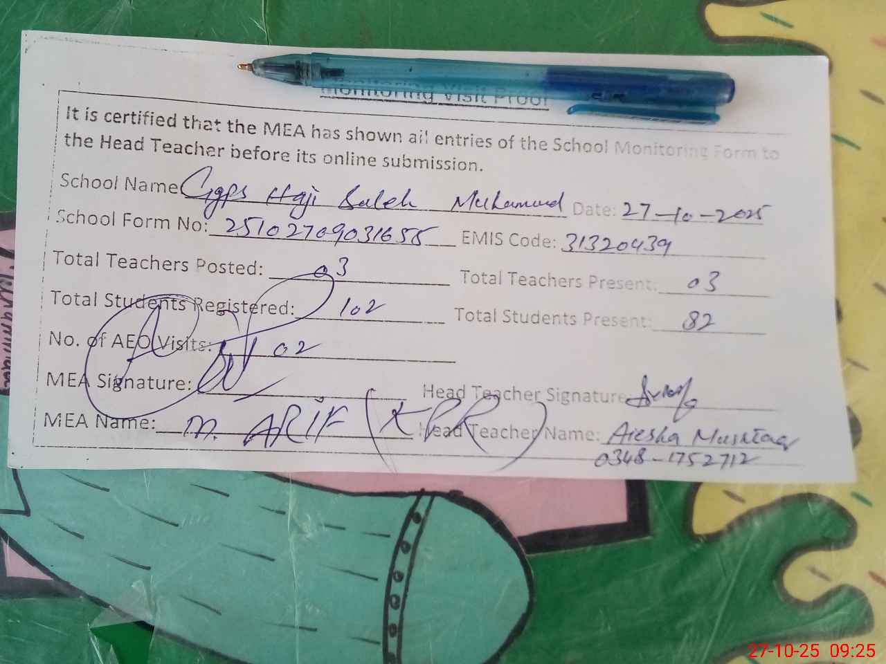 | EMIS Code: 31320439 | Name of School: GGPS HAJI SALEH MUHAMMAD FEROZA | |||