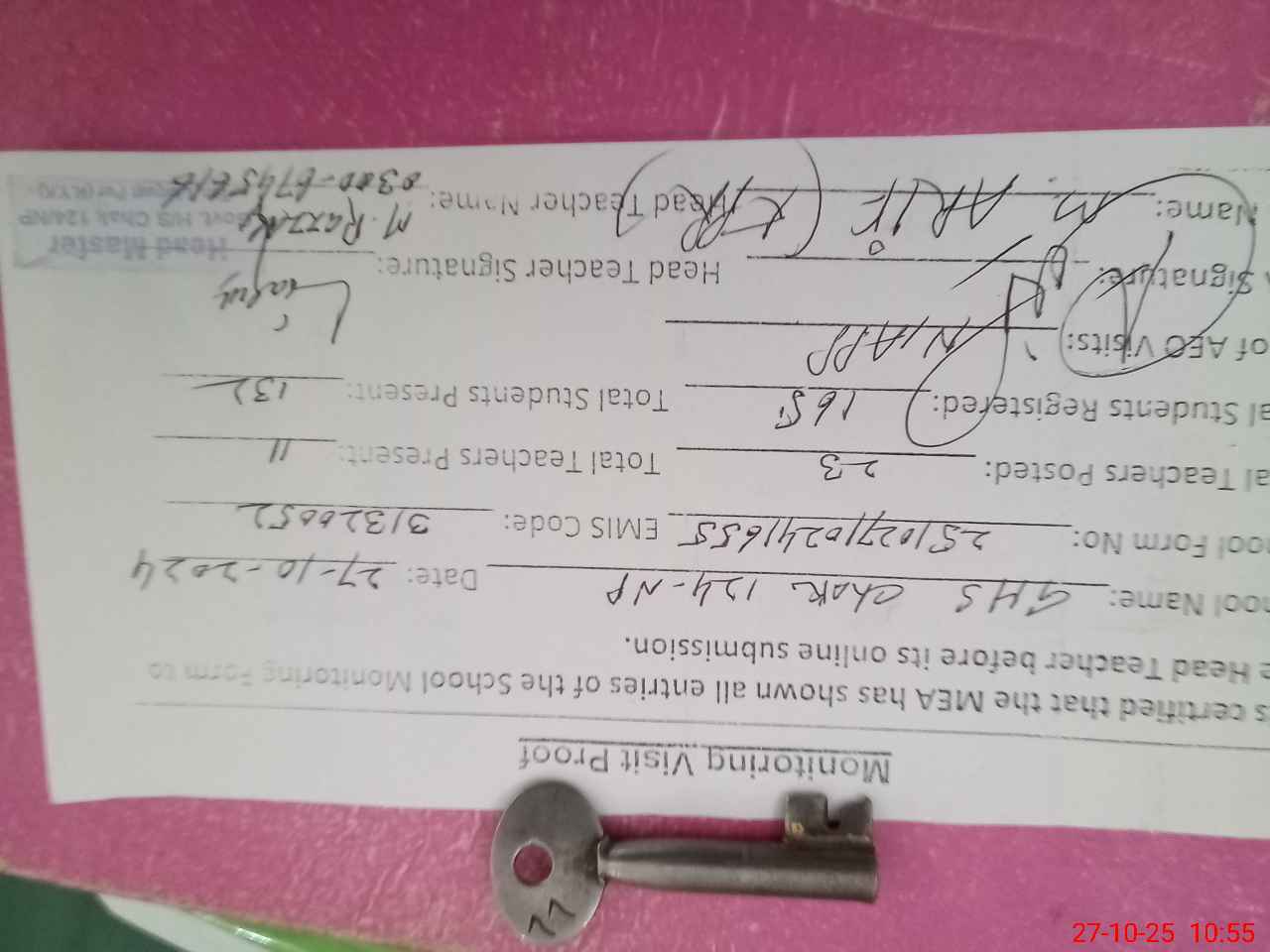 | Certified that this School was Inspected by the Undersigned MEA/DMO Today and the Information Stated Above is as Per Record. | |||||