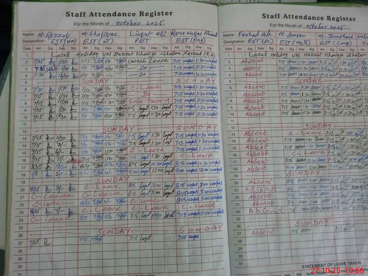 | Remarks (Use Separate Page if Required): 01 teacher named Farhad Ali is absent wef 10 September 2025 | |||||
