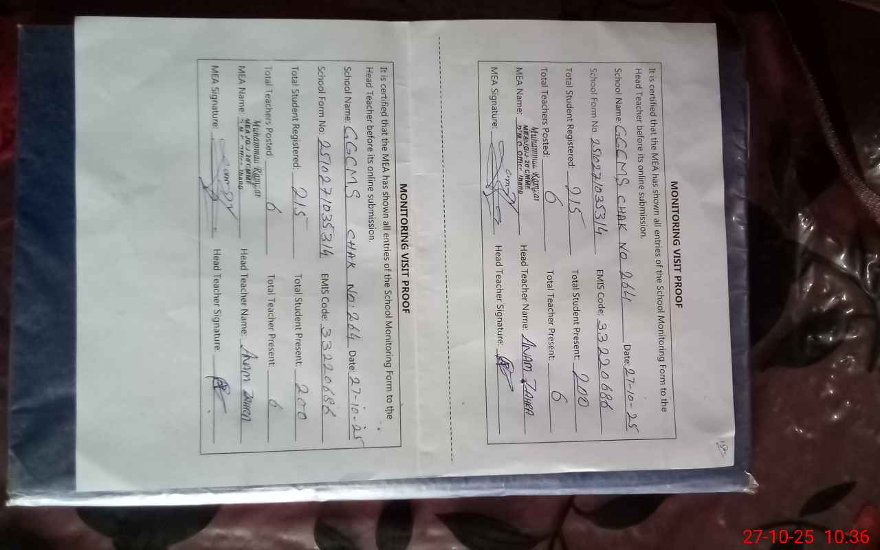 | EMIS Code: 33220686 | Name of School: GGCMS CHAK NO. 264 JB | |||