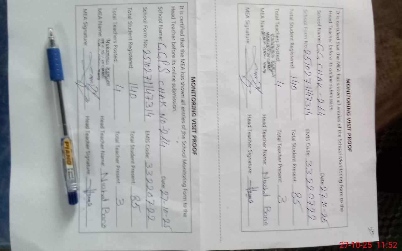 | Attendance Register | Head Teacher | MEA with School | Visit Proof |