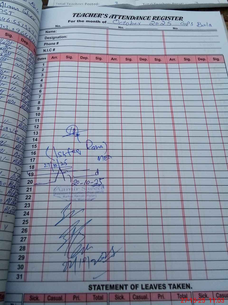 | Name: MSa**** Ah**** Designation: (School Headmaster's/Headmistress's) PST Phone/Cell Number: 03**** |
