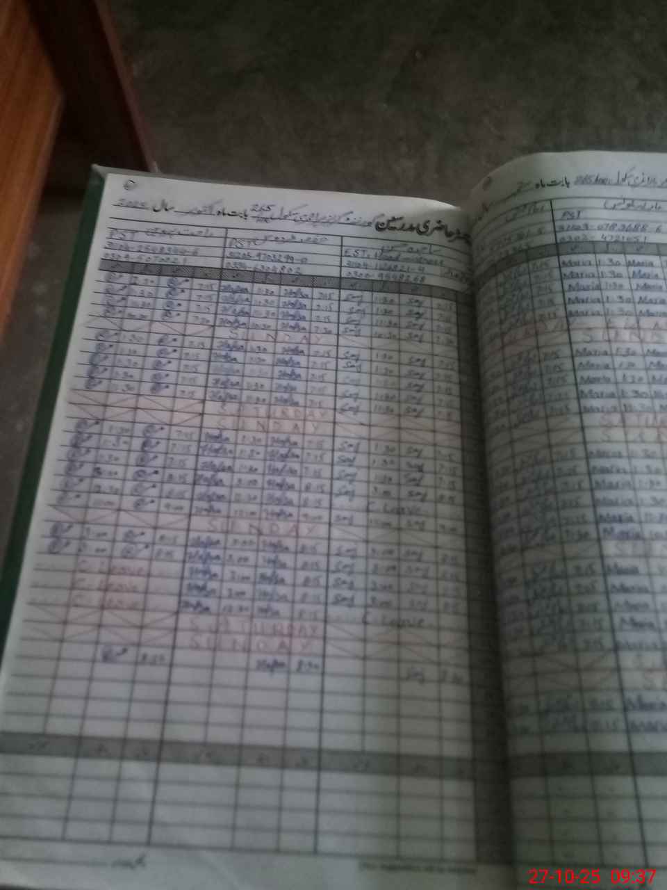 | CNIC | Full Name | Designation | R/C | Absence During Last Calender Month |