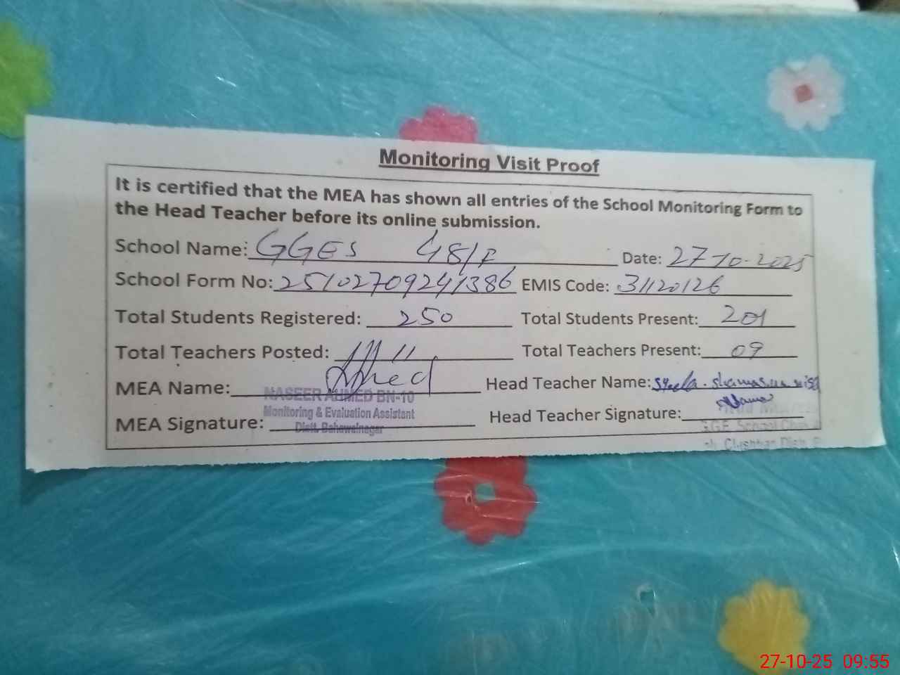 | EMIS Code: 31120126 | Name of School: GGES CHAK NO. 48/F | |||