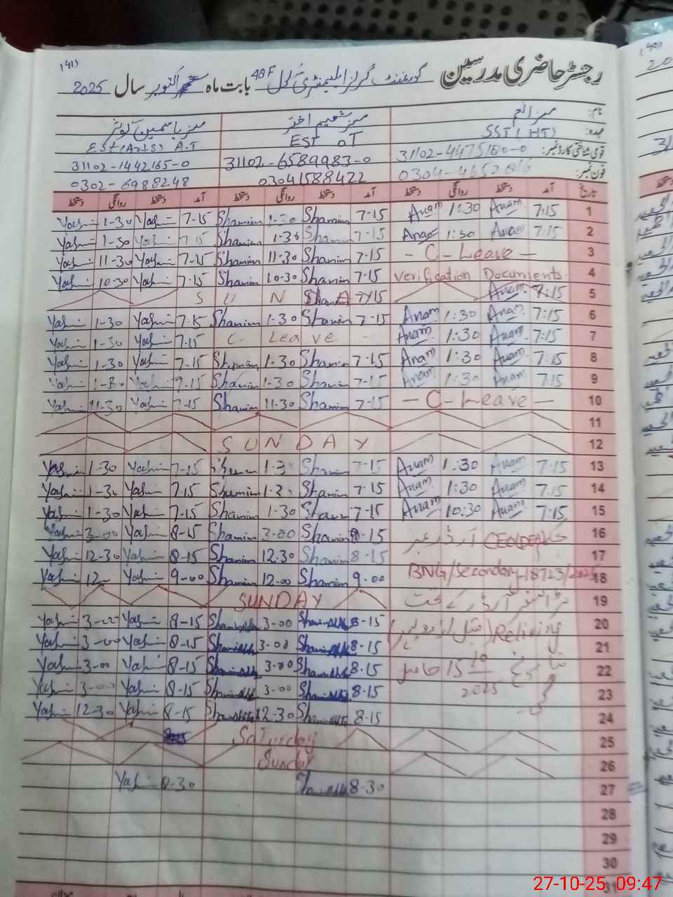 | Name: Sy**** Sh**** UnNi**** Designation: (School Headmaster's/Headmistress's) EST Phone/Cell Number: 03**** |