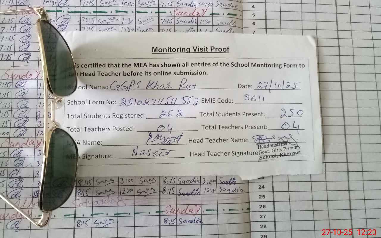| EMIS Code: 36110281 | Name of School: GGPS KHAR PUR SUI GAS ROAD NEAR CHOWK SHAHBAZ | |||