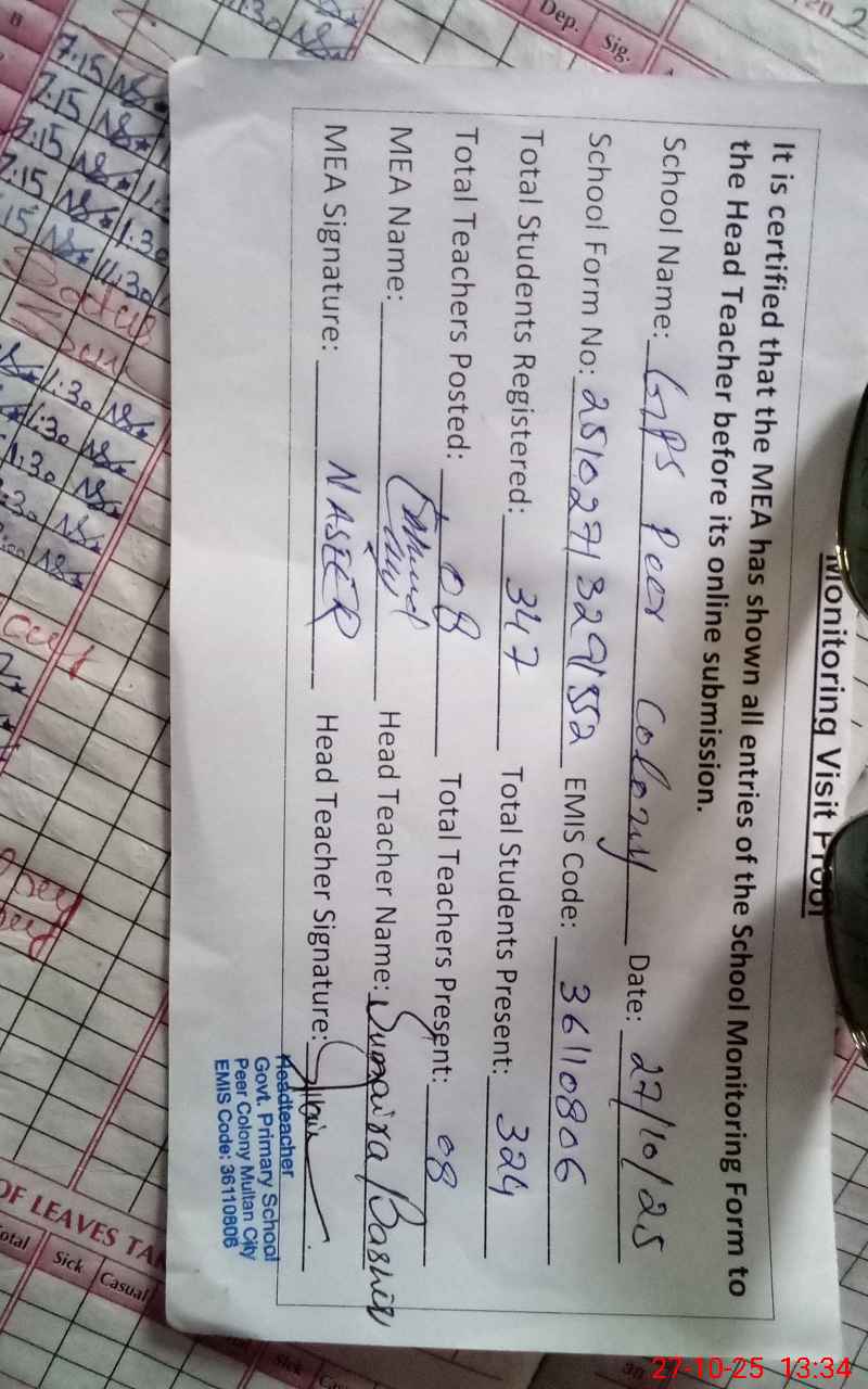 | EMIS Code: 36110806 | Name of School: GPS PEER COLONY | |||