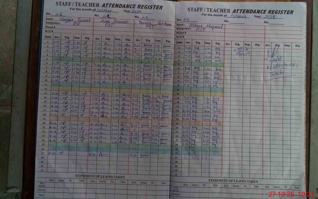 | Attendance Register | Head Teacher | MEA with School | Visit Proof |