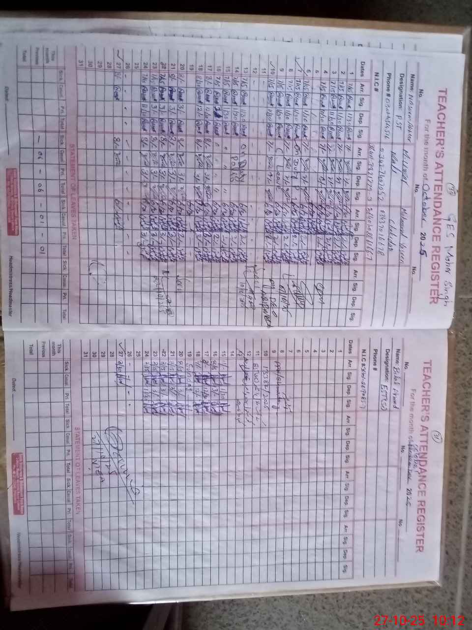 | Name: MU**** RI**** RA**** Designation: (School Headmaster's/Headmistress's) SST (Sc.) Phone/Cell Number: 03**** |