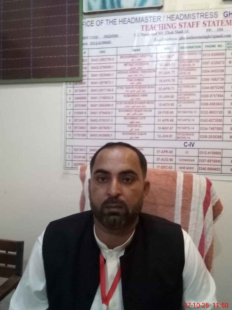 | Name: MU**** SH**** Designation: (School Headmaster's/Headmistress's) SST (Sc.) Phone/Cell Number: 03**** |
