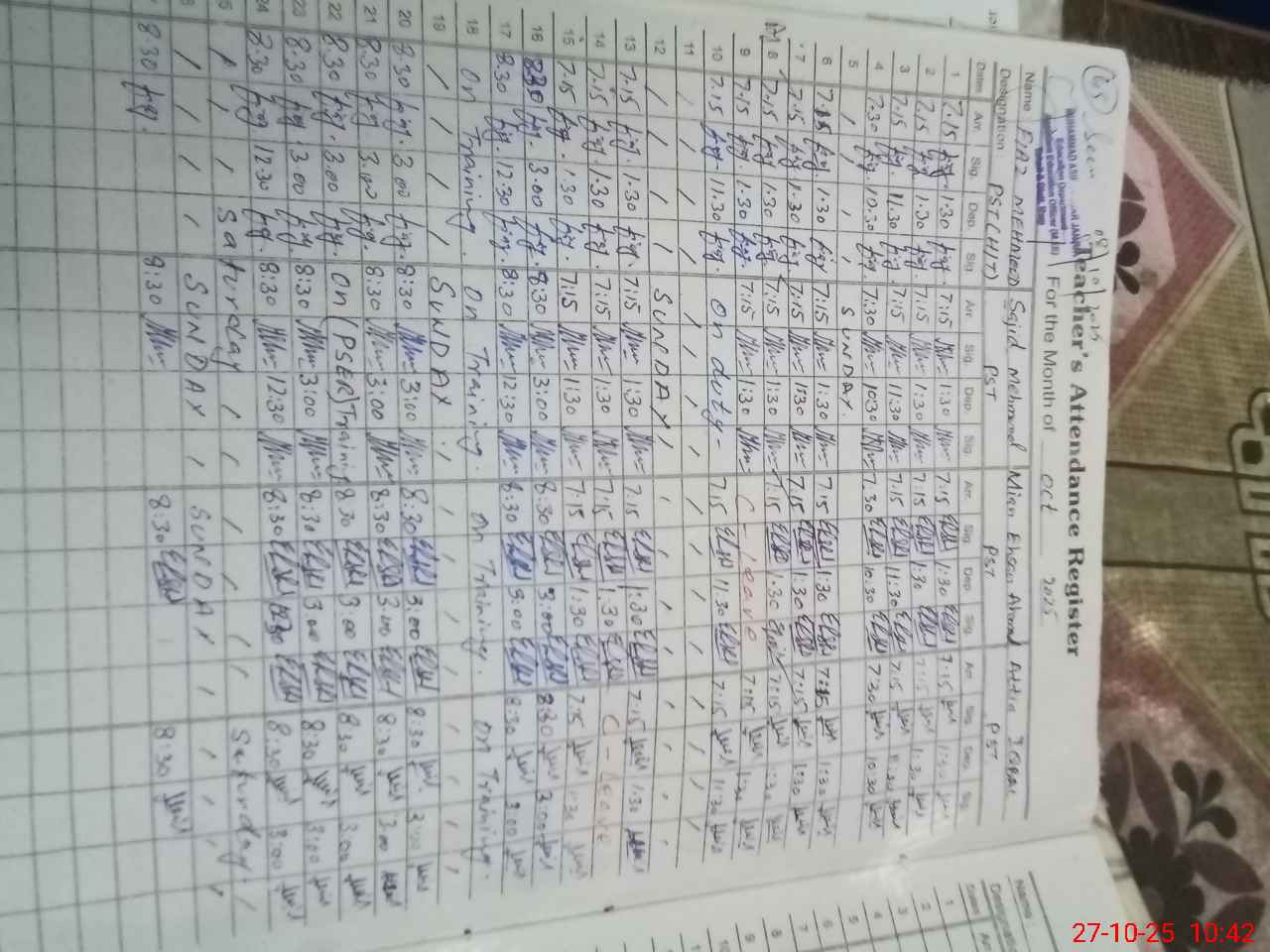 | CNIC | Full Name | Designation | R/C | Absence During Last Calender Month |