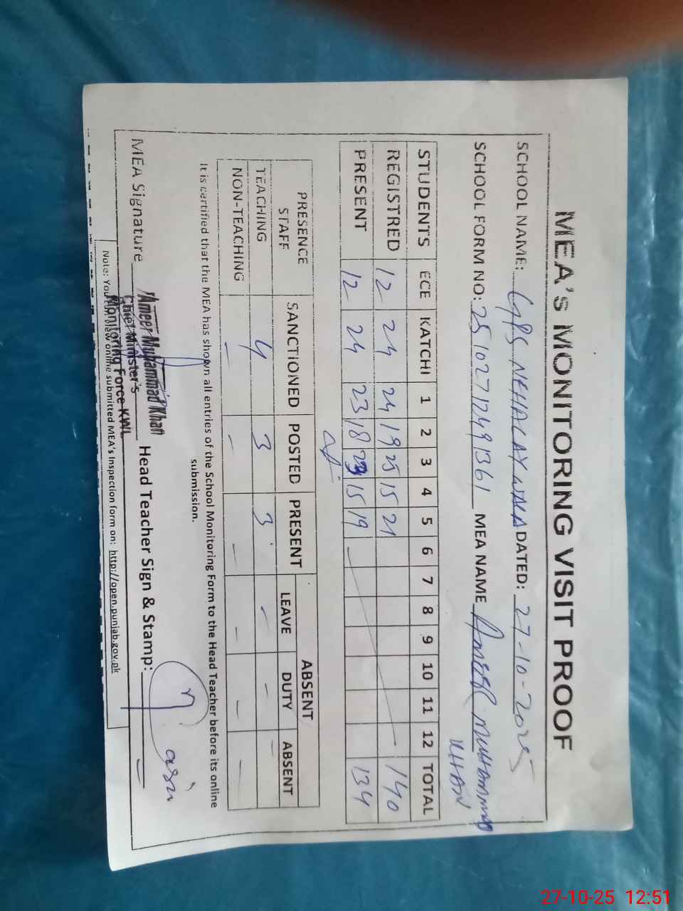 | EMIS Code: 36410569 | Name of School: GPS NEHALAY WALA, ABDUL HAKIM | |||