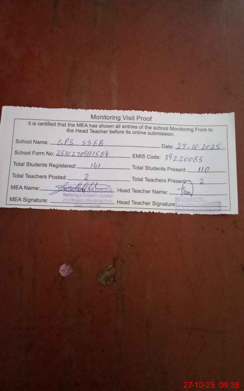 | EMIS Code: 39220083 | Name of School: GPS 53 EB P/O ARIF WALA | |||