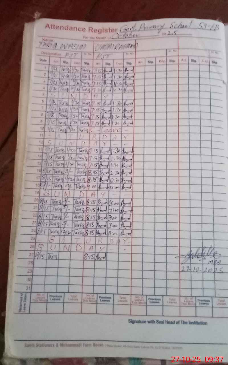 | Name: TA**** WA**** Designation: (School Headmaster's/Headmistress's) PST Phone/Cell Number: 03**** |