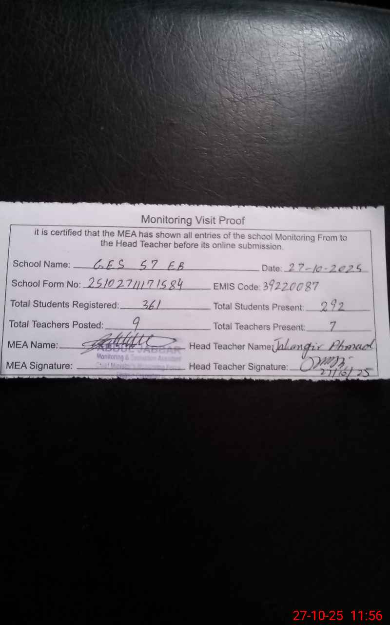 | EMIS Code: 39220087 | Name of School: GES 57 EB | |||