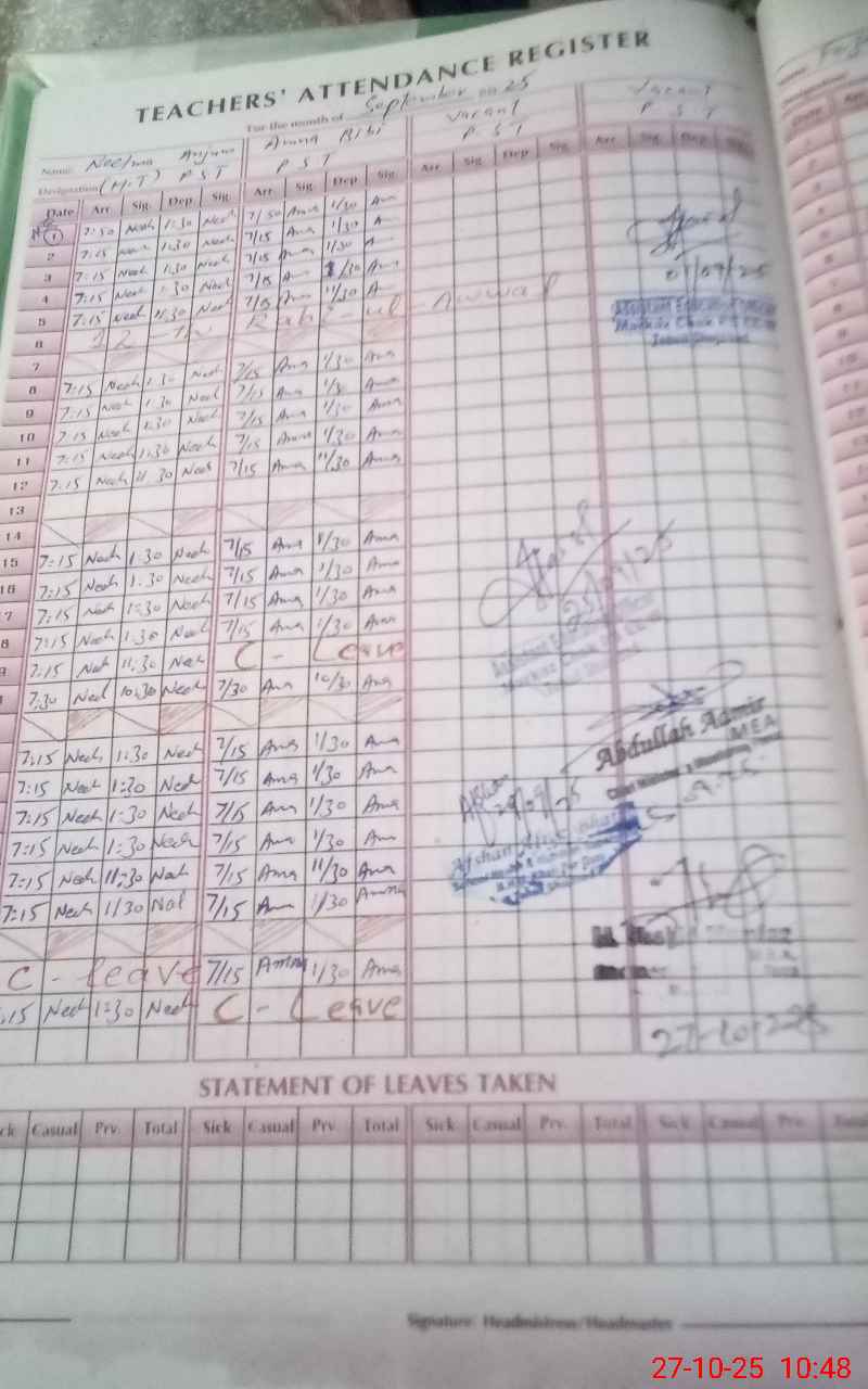 | Attendance Register | Head Teacher | MEA with School | Visit Proof |