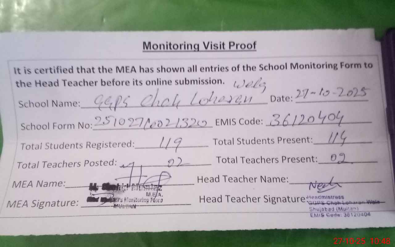 | EMIS Code: 36120404 | Name of School: GGPS CHAH LOHARAN WALA | |||