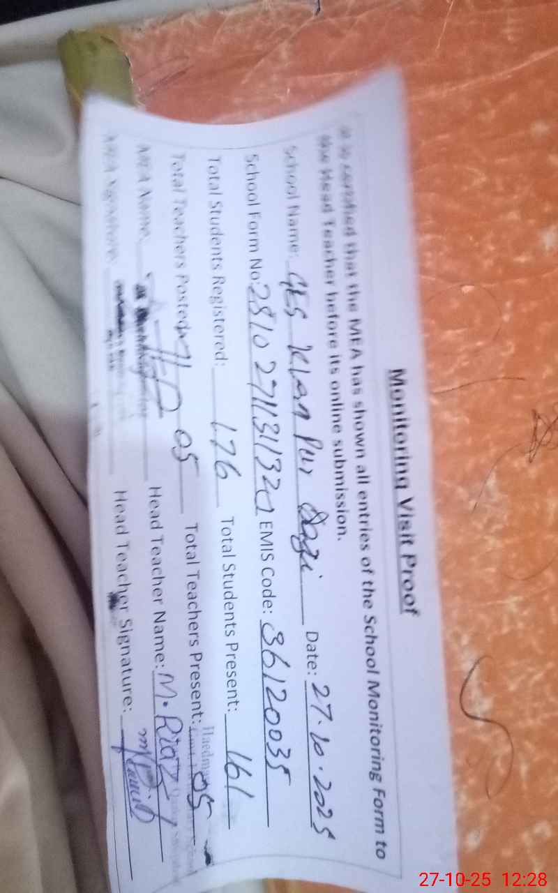 | Attendance Register | Head Teacher | MEA with School | Visit Proof |
