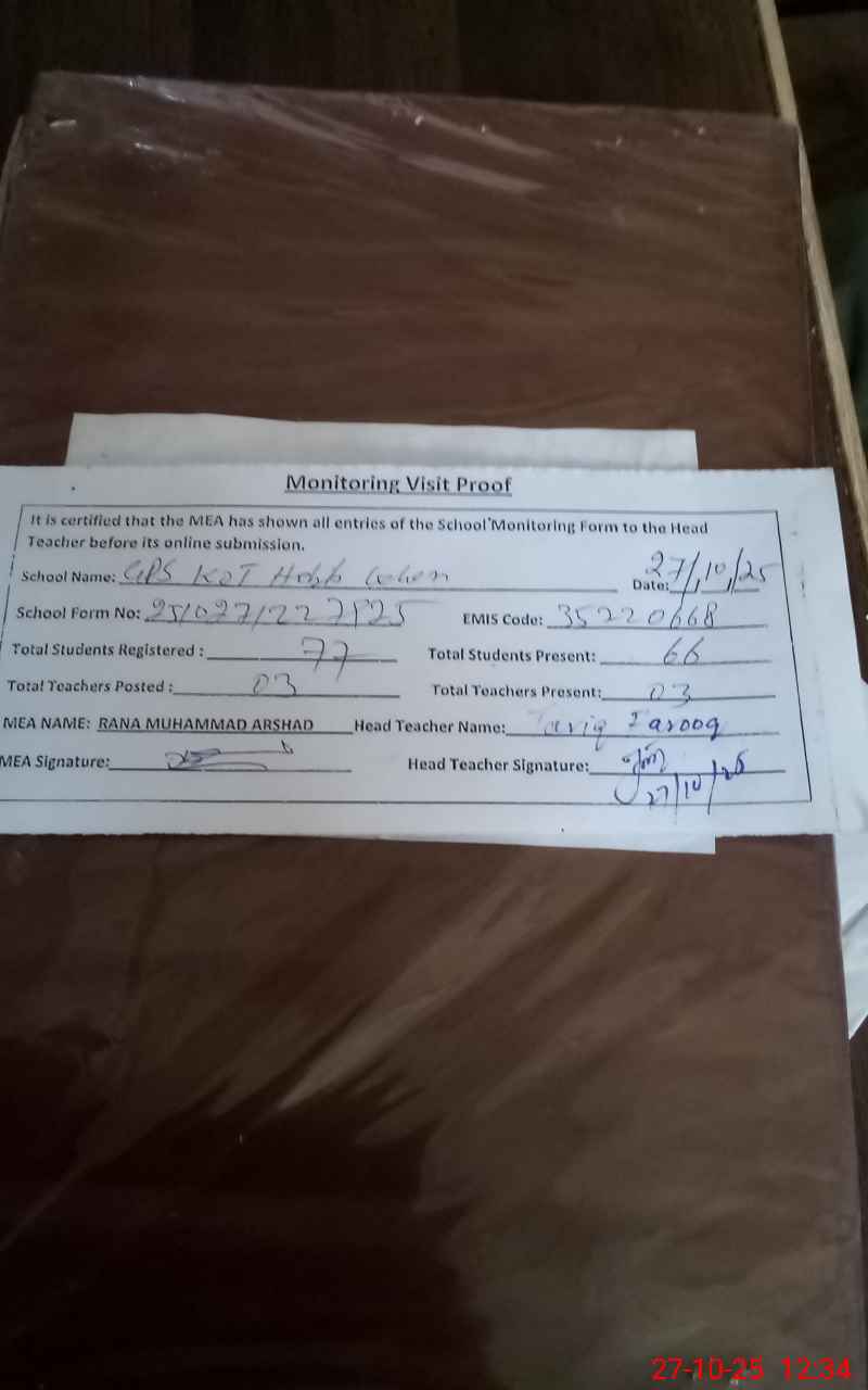 | EMIS Code: 35220668 | Name of School: GPS KOT HABIB AHMAD KHAN | |||