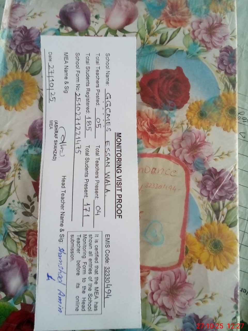 | EMIS Code: 32330494 | Name of School: GGCMES ESSAN WALI | |||