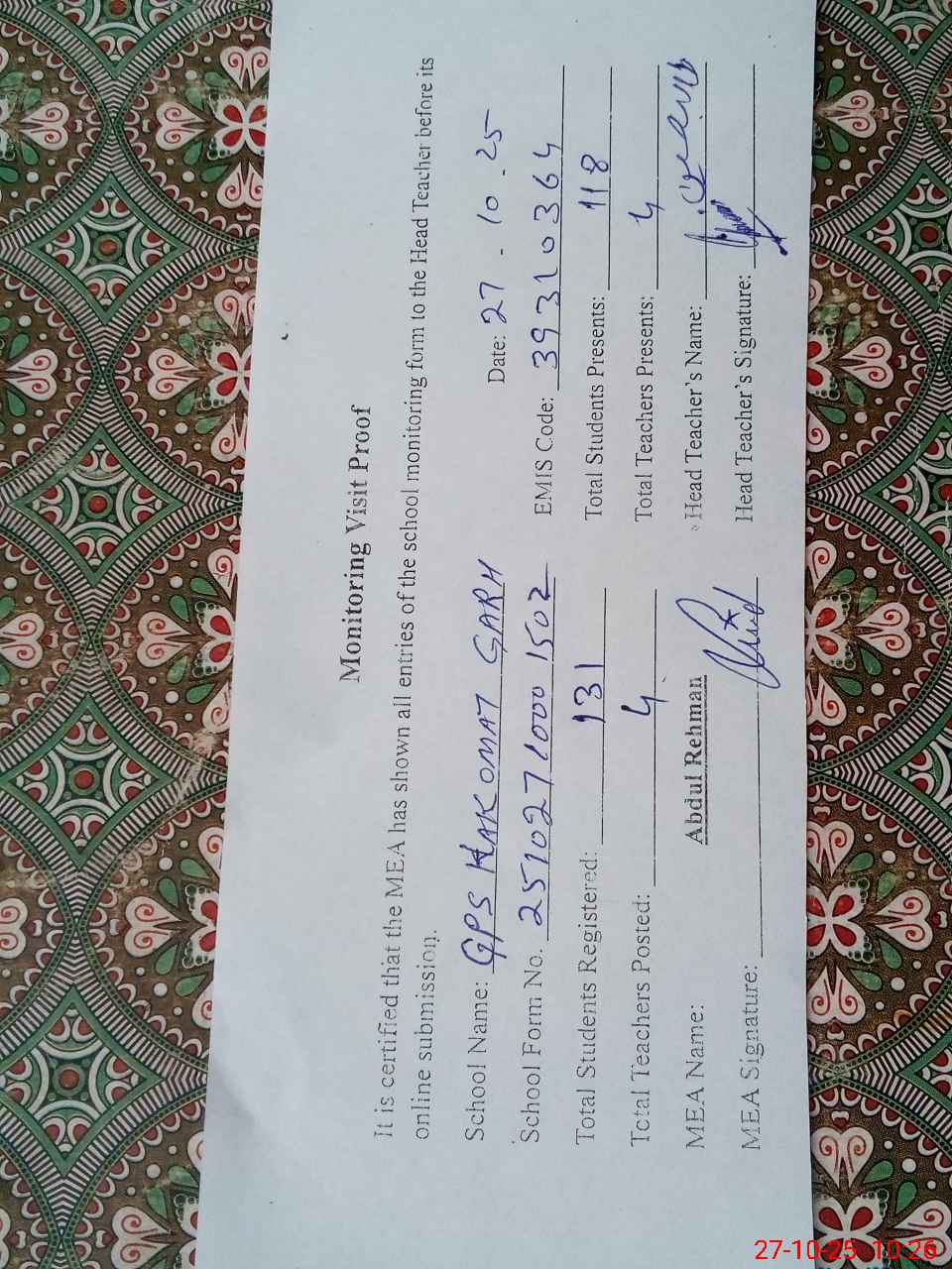 | EMIS Code: 39310364 | Name of School: GPS HAKOOMAT GARH | |||