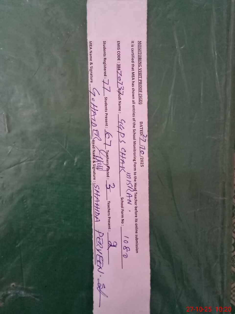 | EMIS Code: 38470737 | Name of School: GGPS CHAK MISRAN | |||