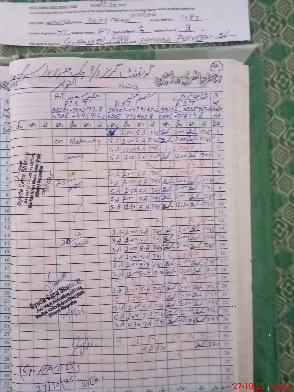 | Name: HA**** SA**** Designation: (School Headmaster's/Headmistress's) PST Phone/Cell Number: 03**** |