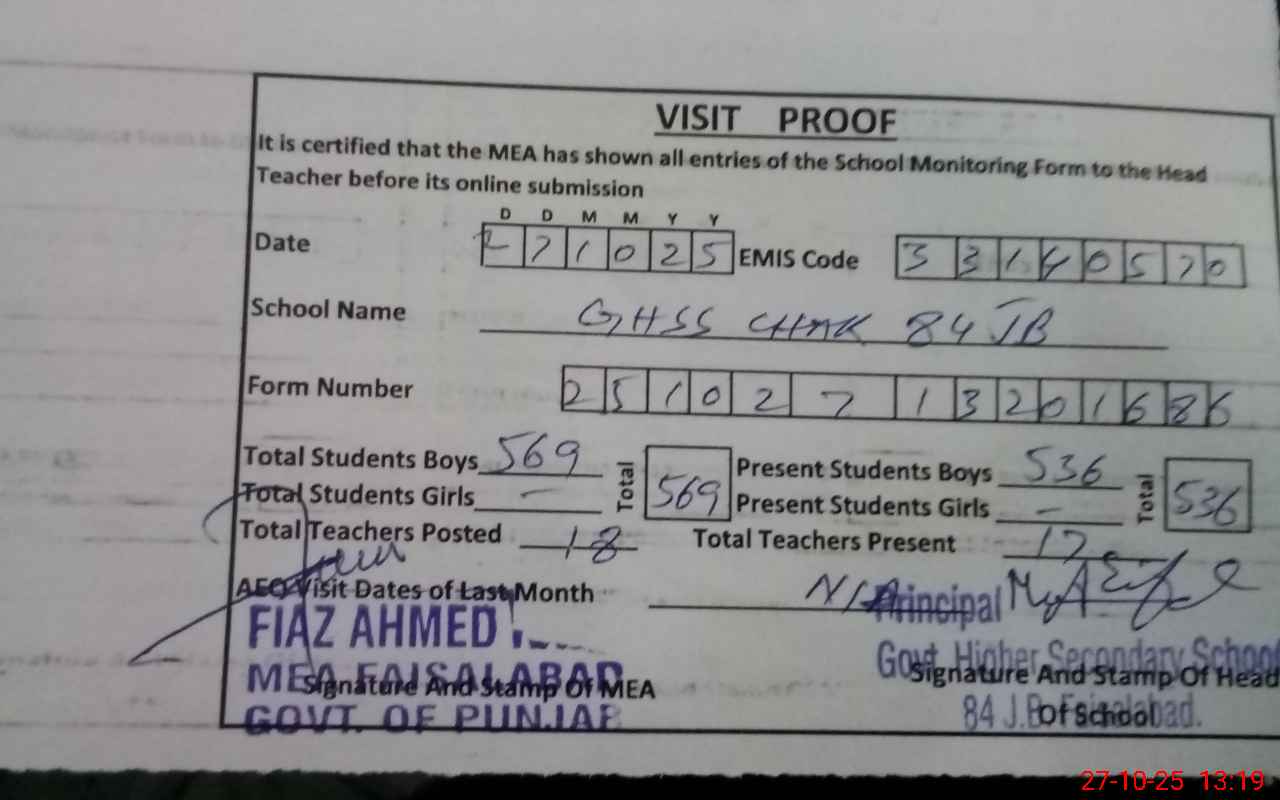 | EMIS Code: 33140570 | Name of School: GHSS CHAK 84 JB FAISALABAD | |||