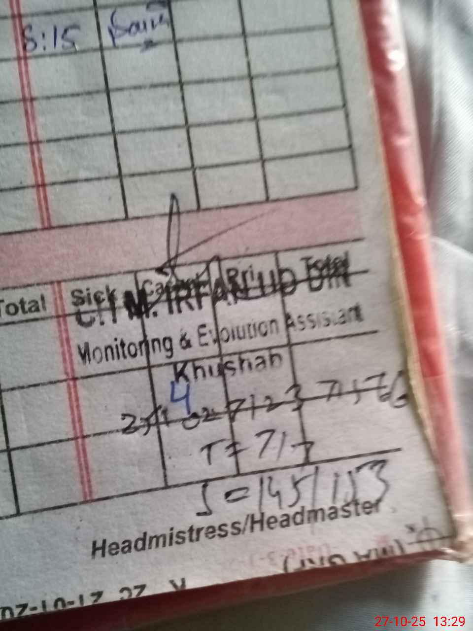 | Name: Bi**** Ah**** Designation: (School Headmaster's/Headmistress's) PST Phone/Cell Number: 03**** |