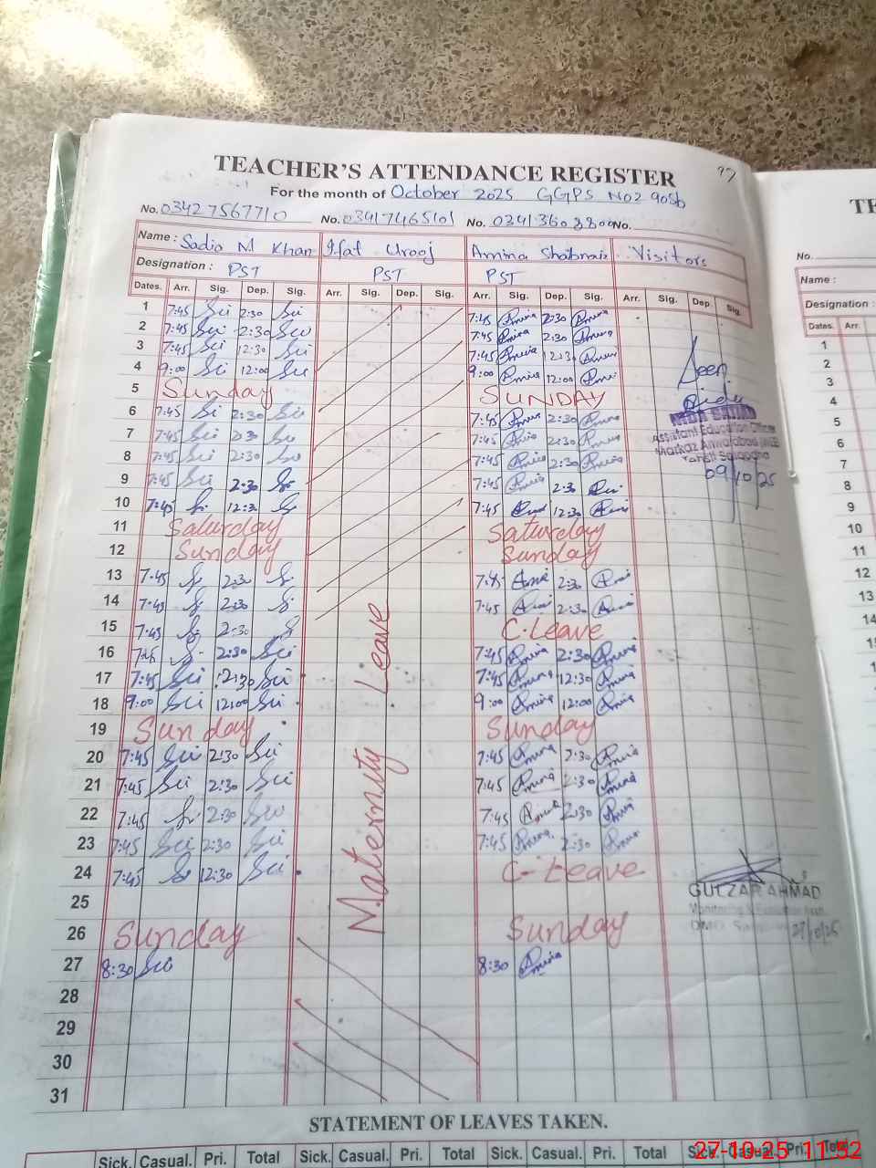 | Name: SA**** MU**** KH**** Designation: (School Headmaster's/Headmistress's) PST Phone/Cell Number: 03**** |