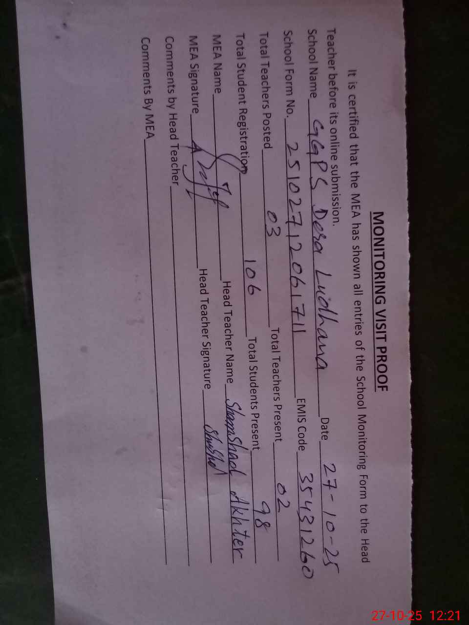 | EMIS Code: 35431260 | Name of School: GGCMS DERA LUDHIANIAN | |||