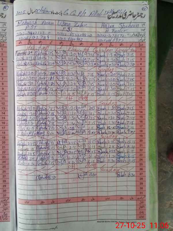 | Name: HA**** SH**** Designation: (School Headmaster's/Headmistress's) PST/PTC/JV Phone/Cell Number: 03**** |