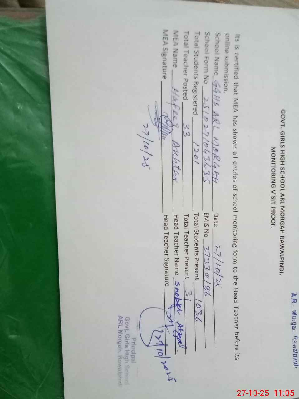 | EMIS Code: 37330186 | Name of School: GGHS MORGAH ARL | |||