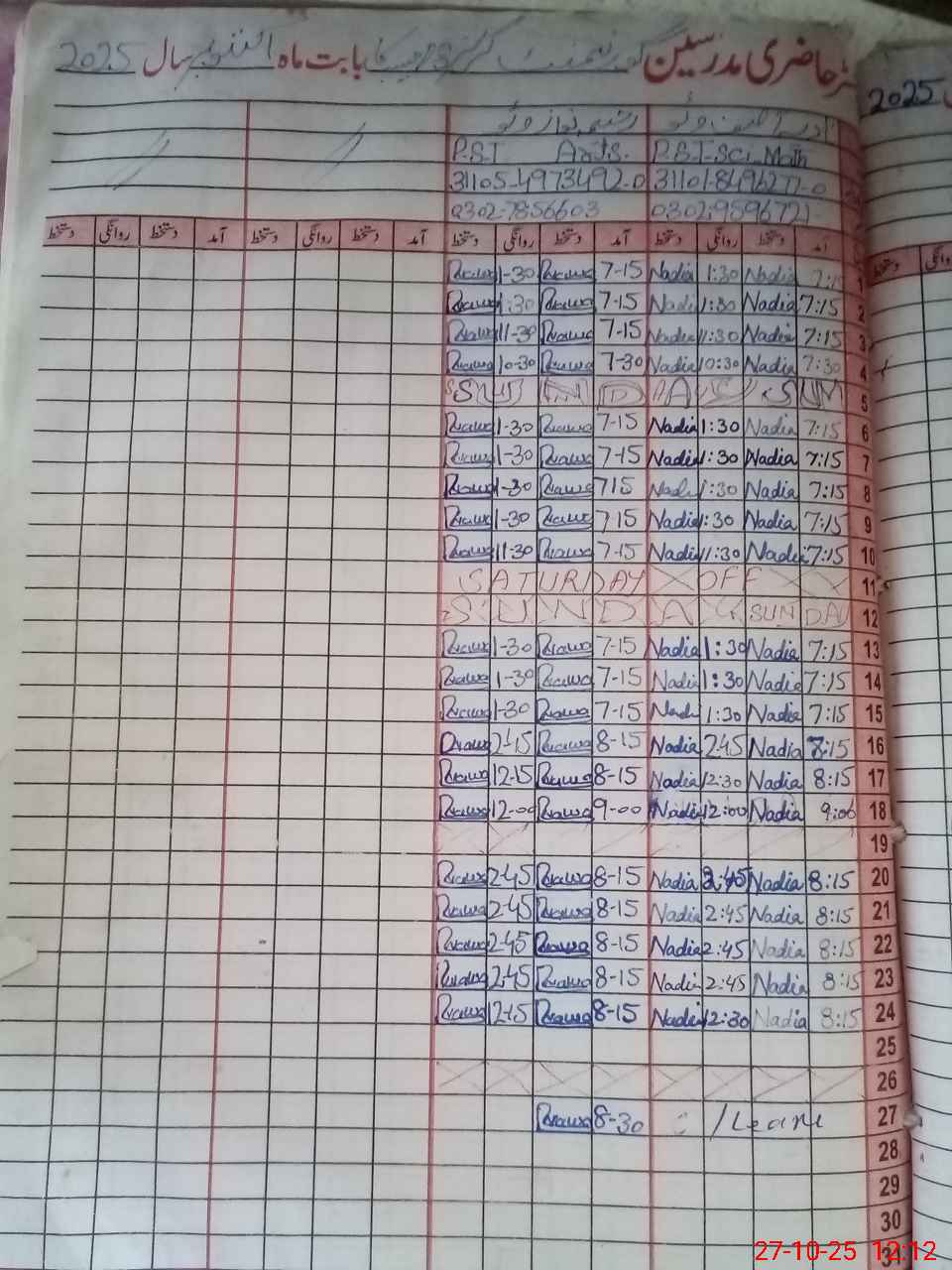 | 31**** | Na**** As**** Wa**** | PST | Regular | 3 | 0 | 0 | 0 | 0 | 0 | 0 | 0 | 3 | Casual |