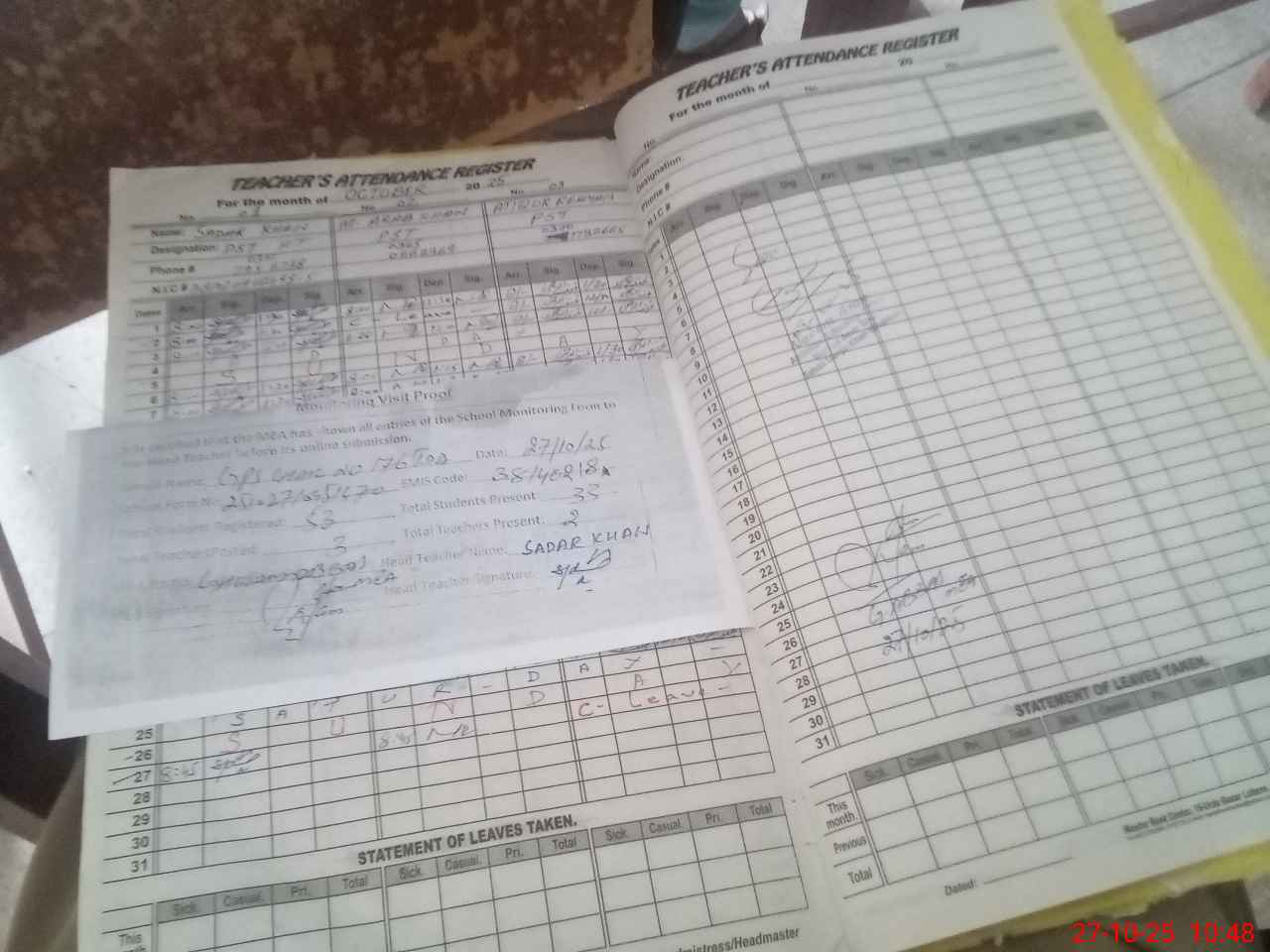 | Attendance Register | Head Teacher | MEA with School | Visit Proof |