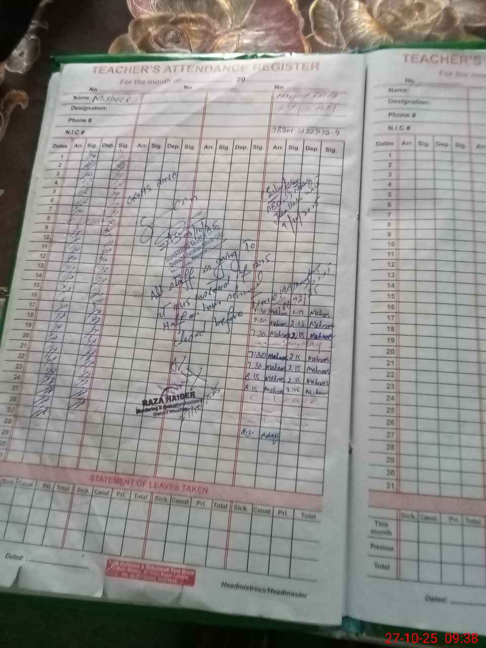 | Name: NA**** IQ**** Designation: (School Headmaster's/Headmistress's) S.S.T.(GEN) Phone/Cell Number: 03**** |