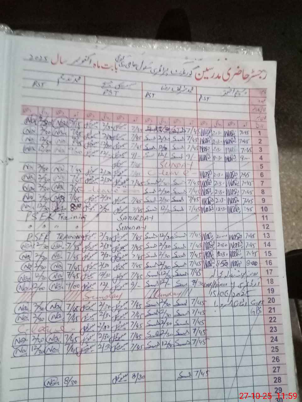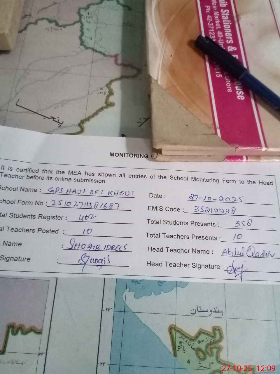 | Remarks (Use Separate Page if Required): 1 Muhammad Hussain SG has been absent from duty w e f 06 March 2019 2 all soaps are missing at students hand washing points 3 white washing required in all classrooms 4 NSB and FTF bank statement unavailable in the school for the month of Sep 2025 | |||||