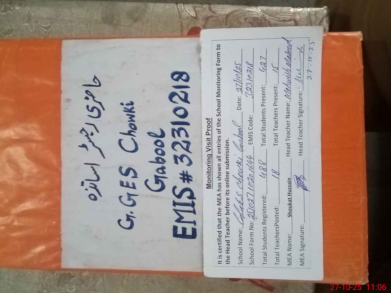 | EMIS Code: 32310218 | Name of School: GGES CHOWKI GABOOL | |||