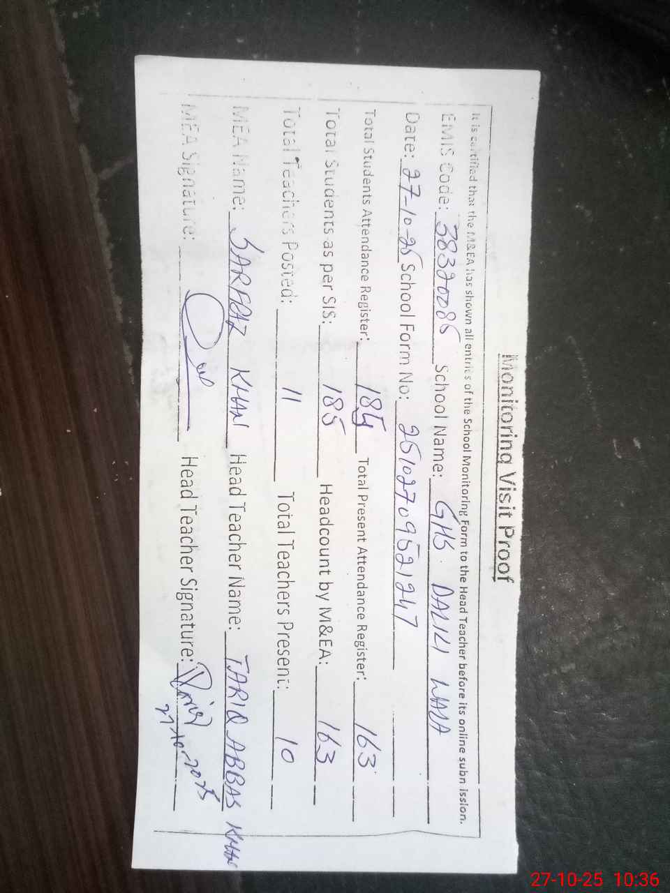 | EMIS Code: 38320085 | Name of School: GHS DALILI WALA | |||