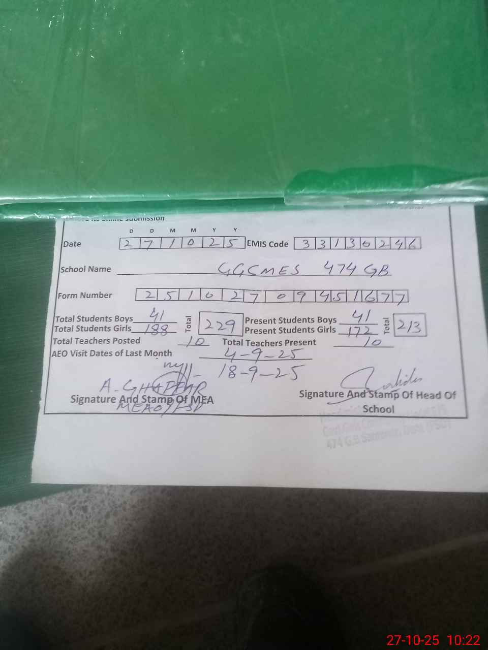| EMIS Code: 33130246 | Name of School: GGCMES CHAK 474 GB MAMUNKANJAN | |||
