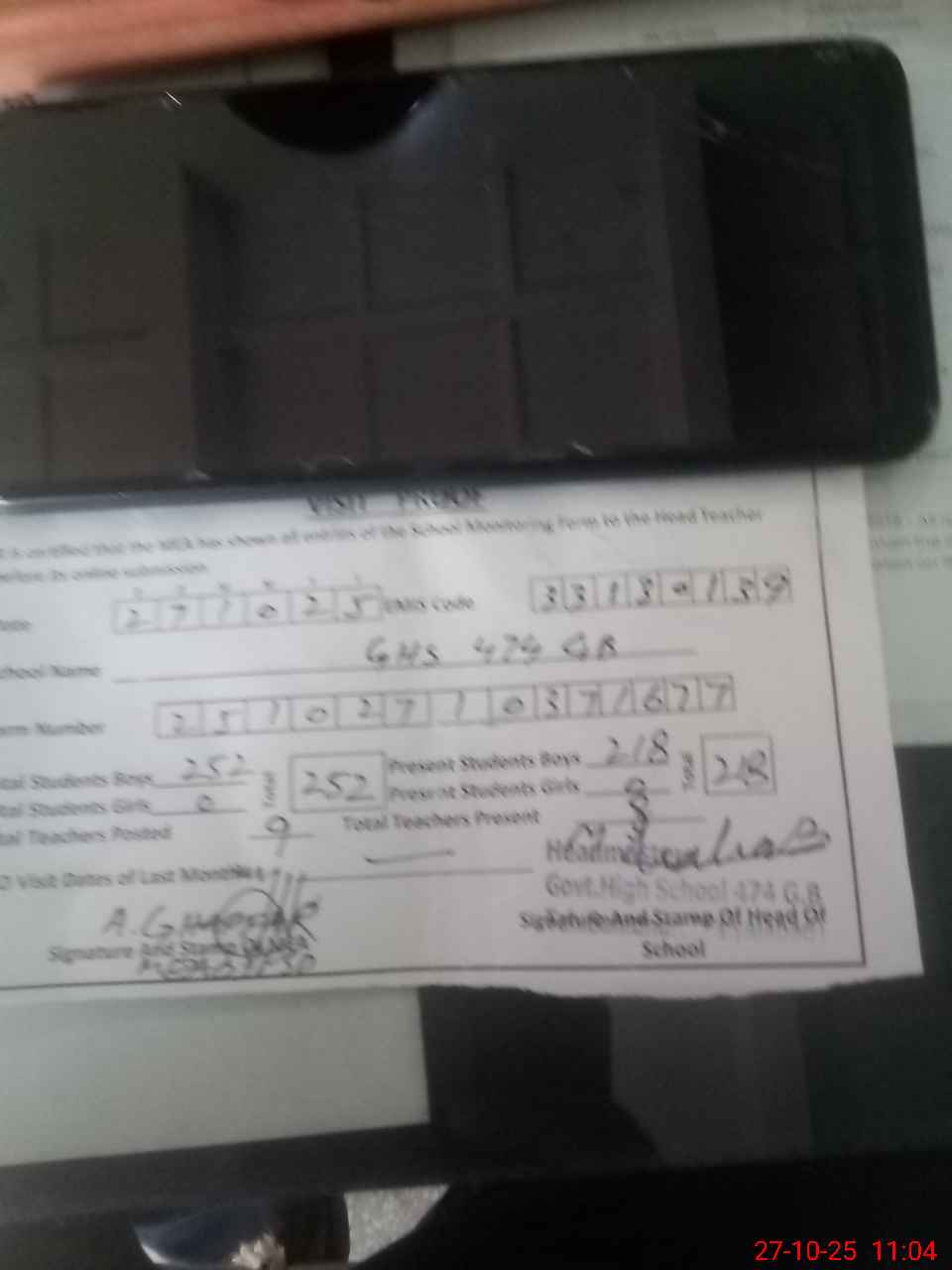 | Attendance Register | Head Teacher | MEA with School | Visit Proof |