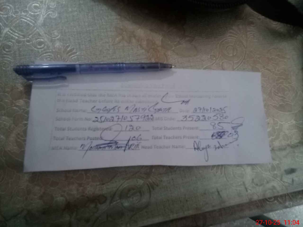 | Attendance Register | Head Teacher | MEA with School | Visit Proof |