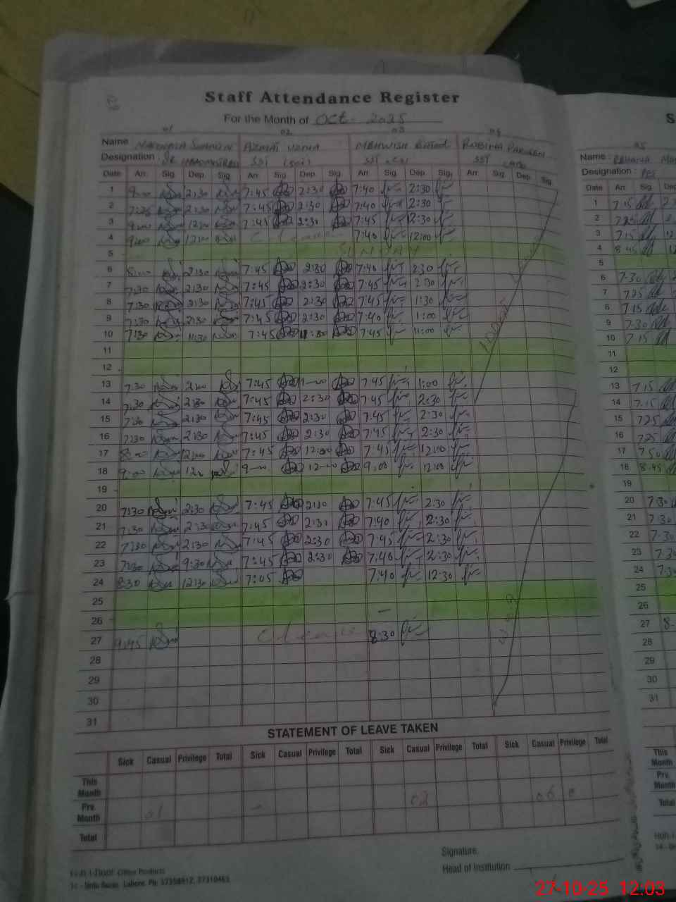 | 35**** | Az**** Uz**** | SST | Regular | 0 | 0 | 0 | 0 | 0 | 0 | 0 | 0 | 0 | Absent (Un-Authorized) |