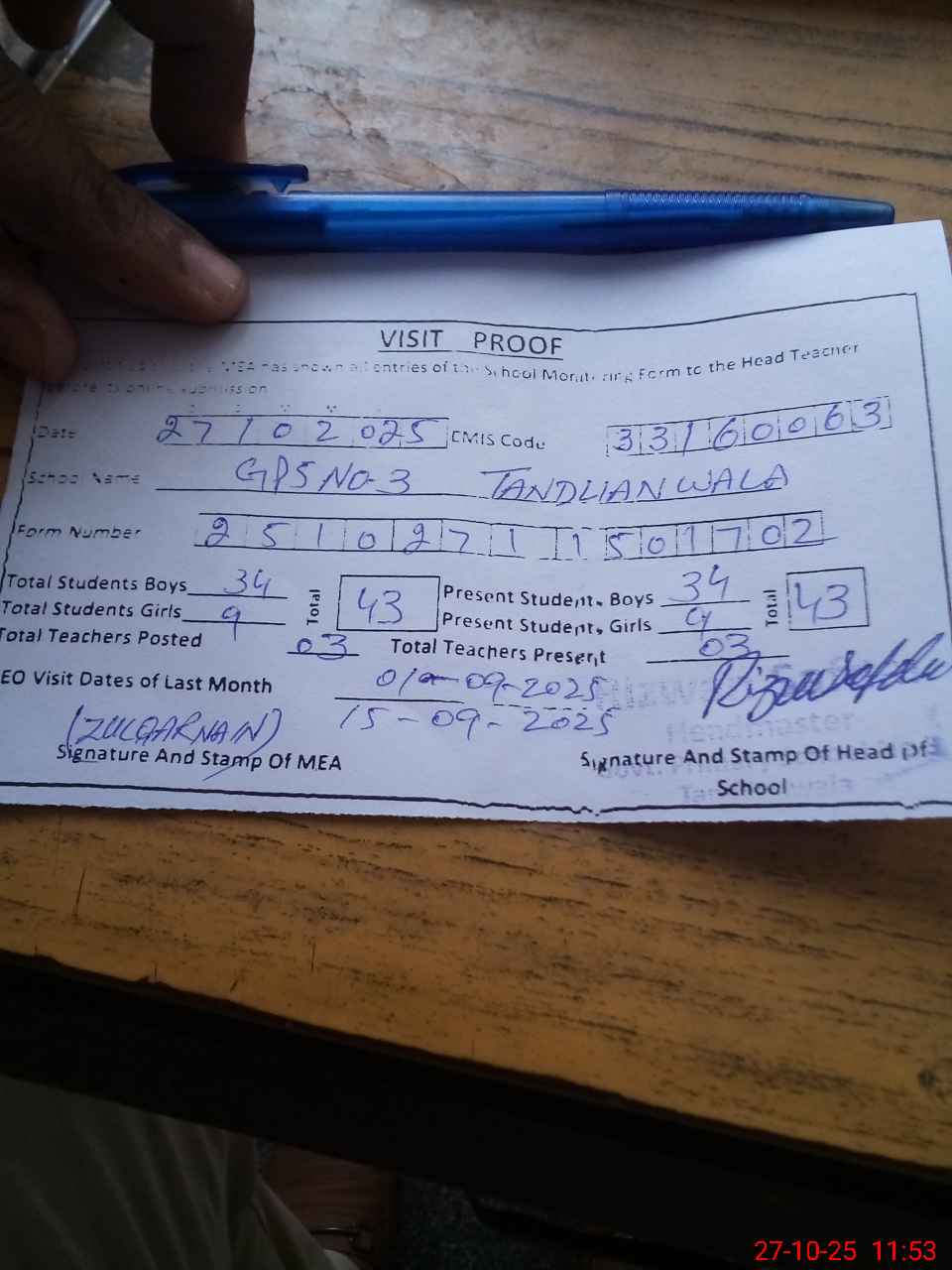 | EMIS Code: 33160063 | Name of School: GPS NO 3 TANDLIANWALA | |||